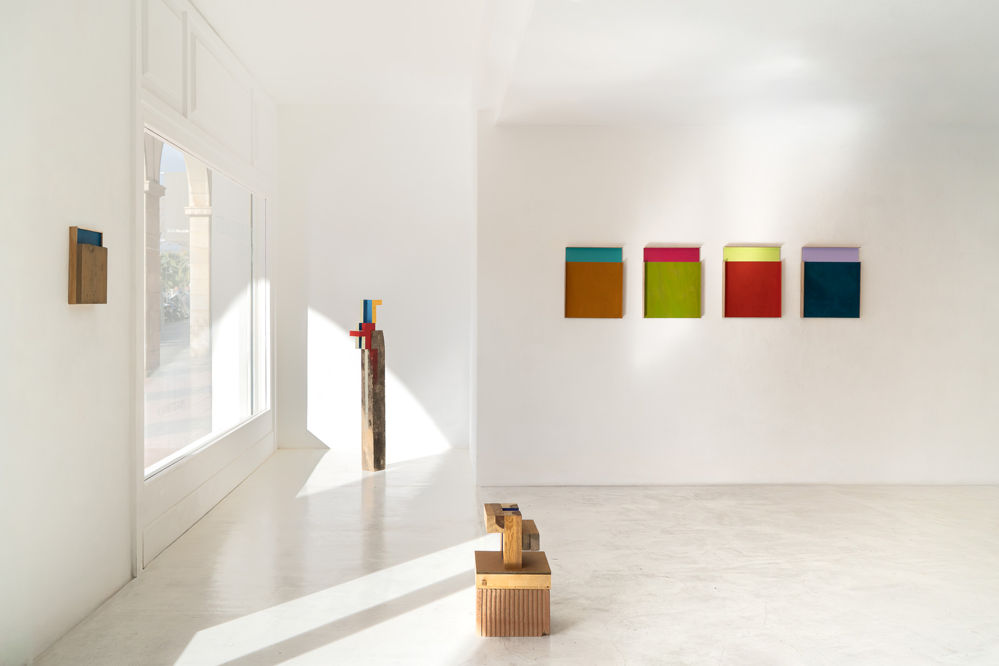 resented at ABA Gallery in Palma, Between Horizons marks the second collaboration between the gallery and Olmo Sard, a Mallorcan artist whose practice unfolds in close symbiosis with matter and form. Sard’s work is defined by an acute sensitivity to geometry, weight, and space: the virtue of the right angle, the tension between balance and distortion, the interplay of light and shadow, and the expressive potential of colour. His preferred materials—wood, cardboard, and paper—are contrasted with bold, flat colours that activate planes, surfaces, and forms, creating environments that invite both contemplation and immersion.