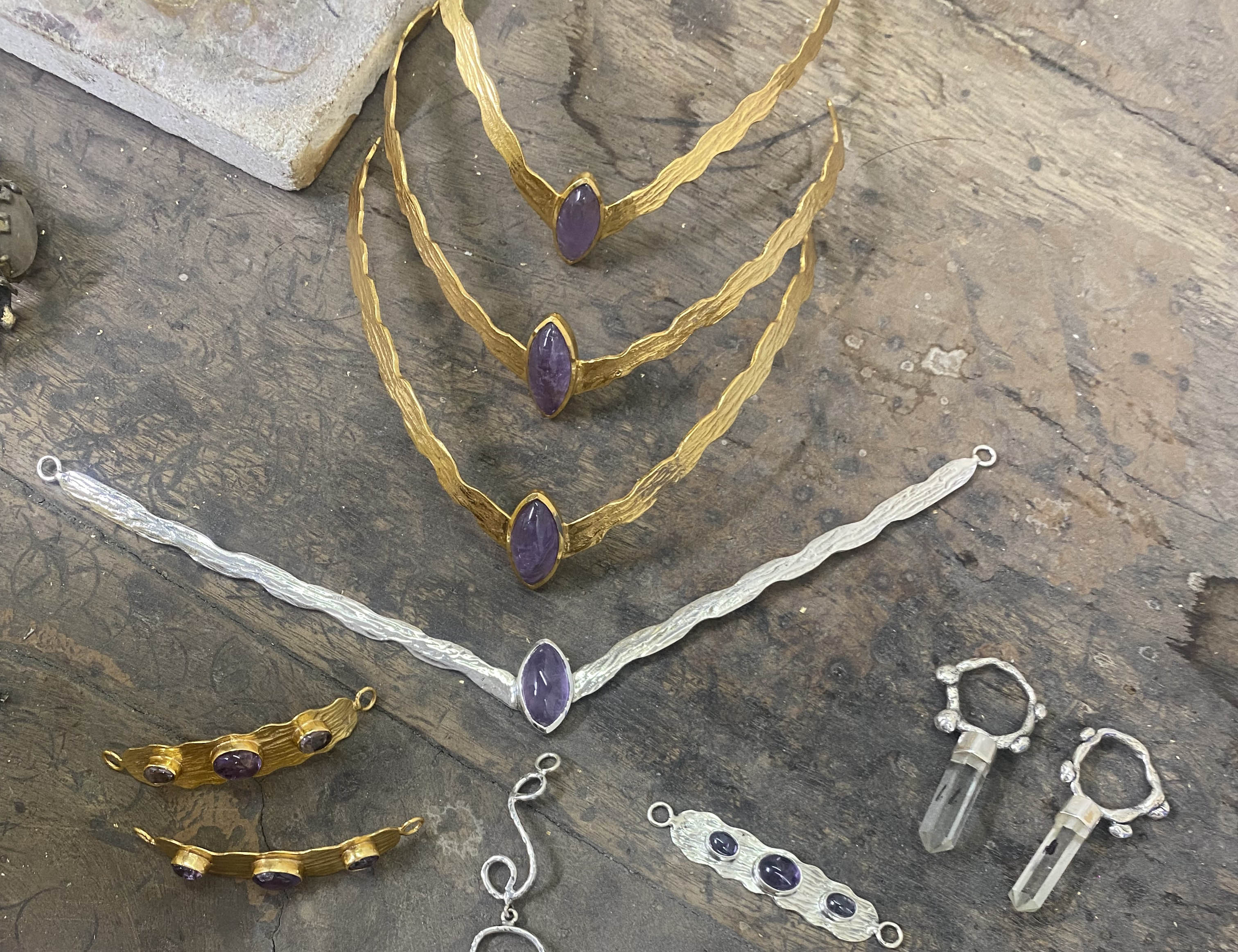 On an intuitive whim, Bornay booked a ticket to India, an experience that would change the direction of her life. She had no plans or itinerary on that first trip – just a love of yoga and deep curiosity. From Goa she went to Varanasi, where she met an artisan jewellery maker. “I was watching this artist and I was blown away,” she says. “From that moment,  I started looking for jewellery schools and I found one in Mumbai, so I moved there and did a 3 month course.” This led to a 1-year program in Mumbai, an intense program with courses from 9-5, but it gave Bornay the foundation from which she could start to realise her own designs.