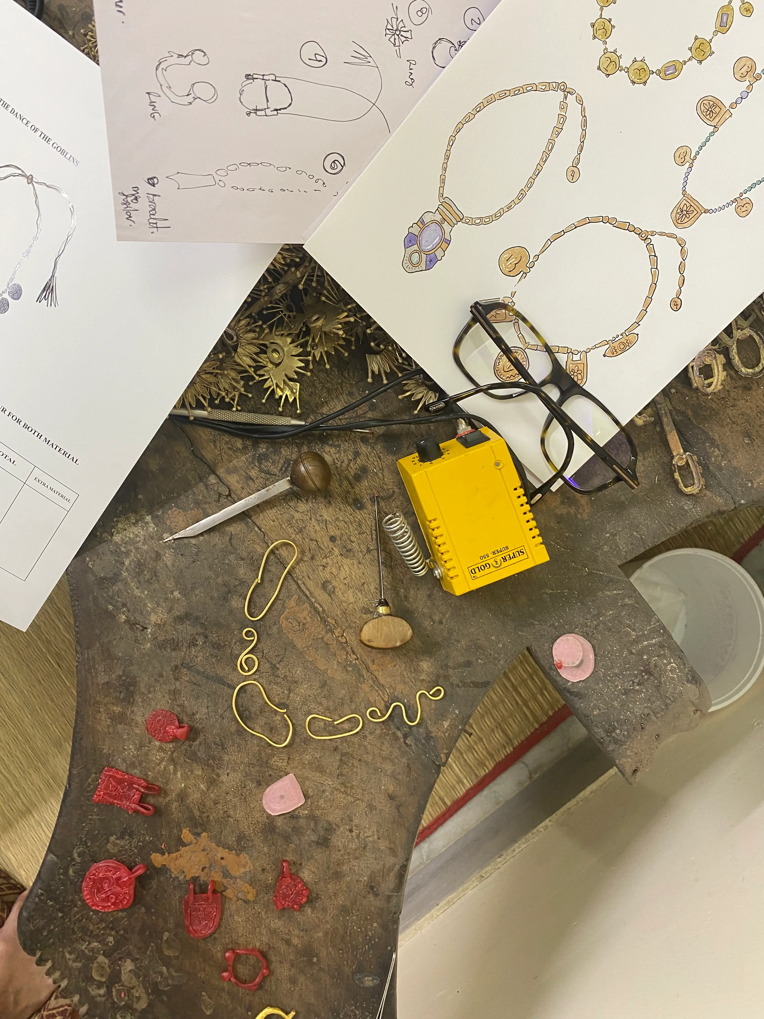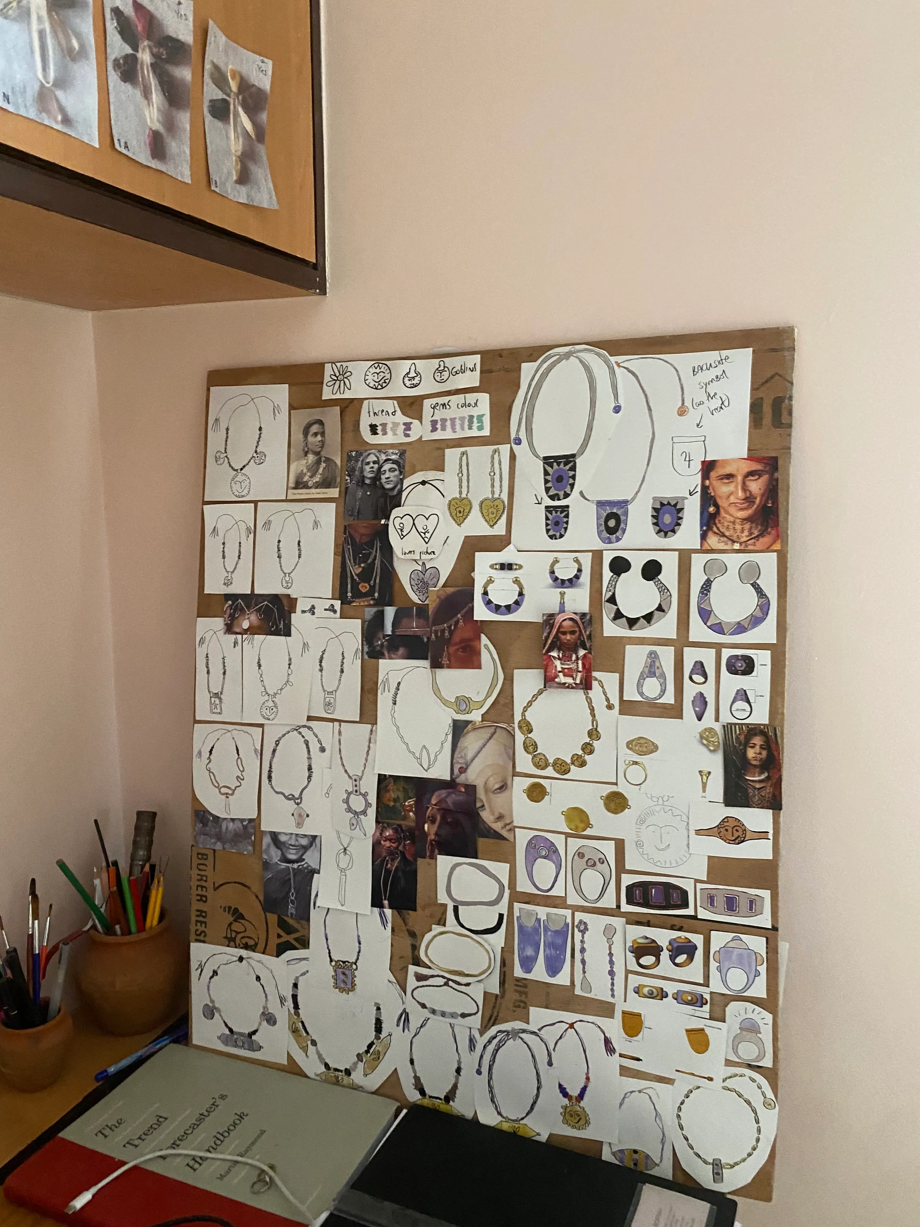 In addition to jewellery design, she works with fashion brands who are producing collections in India, helping to facilitate the designs and final products. This allows her a certain freedom to design and produce her jewellery collections at the pace that works for her personally, taking the time and reflection to create at her own pace.