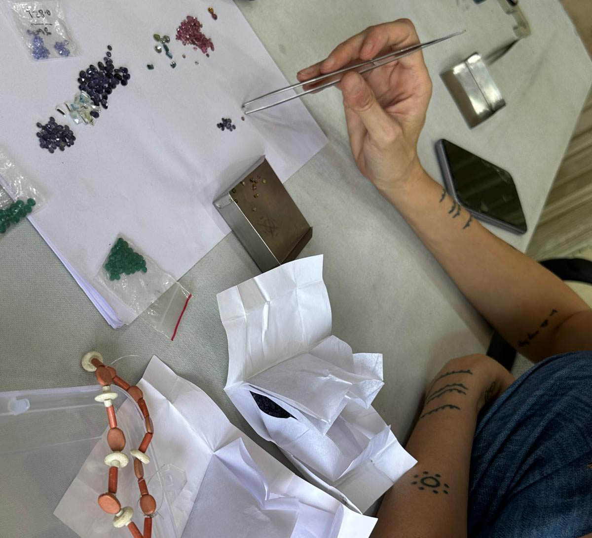 friend introduced her to an artisan in Jaipur, where she had moved after Mumbai. He worked in a traditional Haveli that had many shops and workshops around gemstones. “He was super old-school and didn’t speak any English,” Bonay describes. “But I brought my tools and I worked with carbon and wax, polish, and we managed to communicate and I learned so much.”