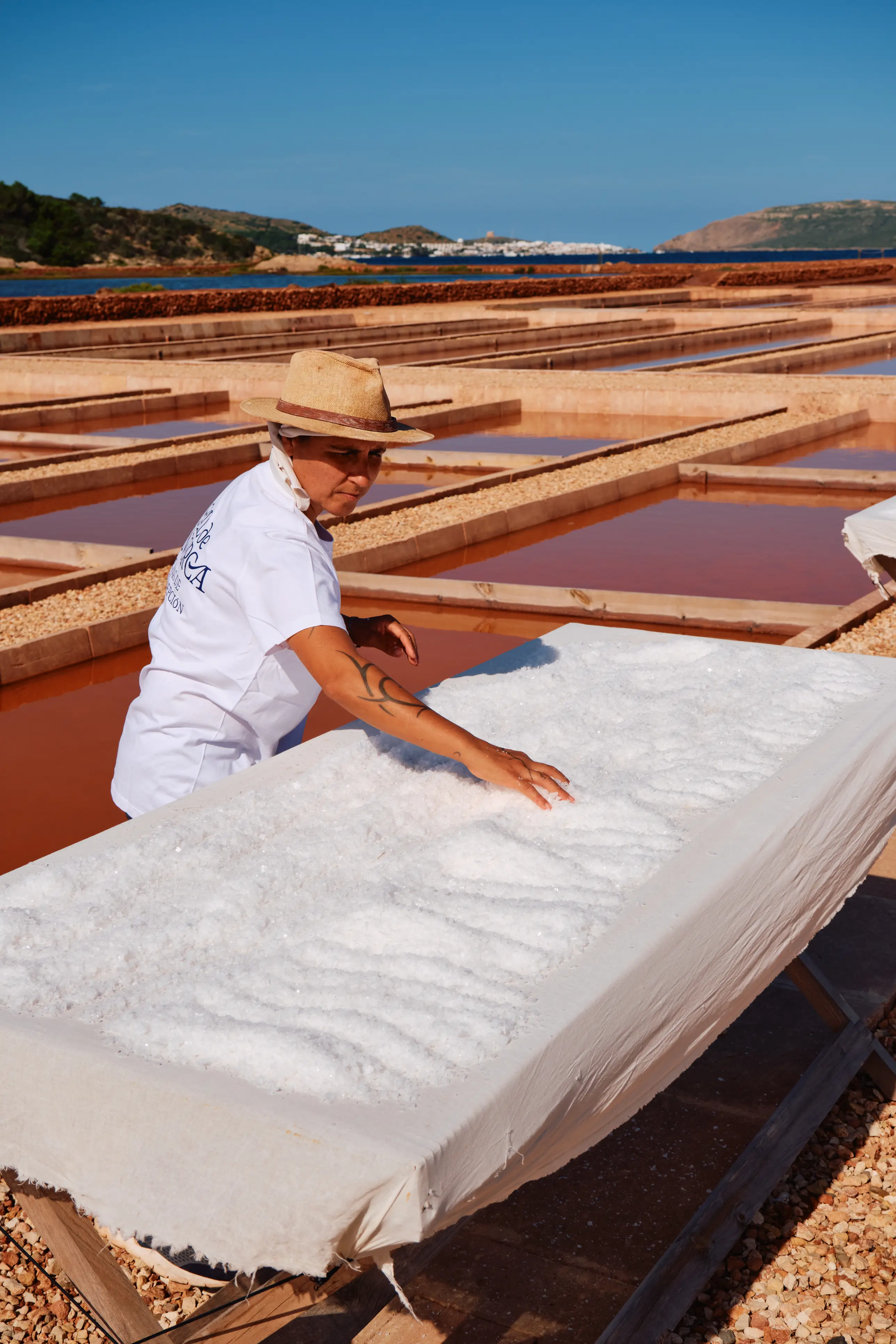 The first salt fields in Menorca appeared in the 18th century. Until then, Menorcans enjoyed the privilege of being able to collect salt deposits formed by the evaporation of seawater from the crevices in the rocks, free of charge. In 1713, Spain signed the Treaty of Utrecht and Menorca came under British rule. England, which wanted to make the island a strategic point for controlling the Mediterranean and developing trade, encouraged the creation of salt beds. There were six salinas in Menorca, four in the north and two in the south, but they were not equally successful. The clay in the north maintained the water temperature, while in the south, where the soil is limestone, the water cooled quickly. After the Second World War, industrialised salt flooded the island and the last salt bed, La Concepción, closed its doors in 1984. The tedious, low-paid and gruelling work of a salt worker, carried out under the relentless heat of the sun, did not inspire many to take up the trade.