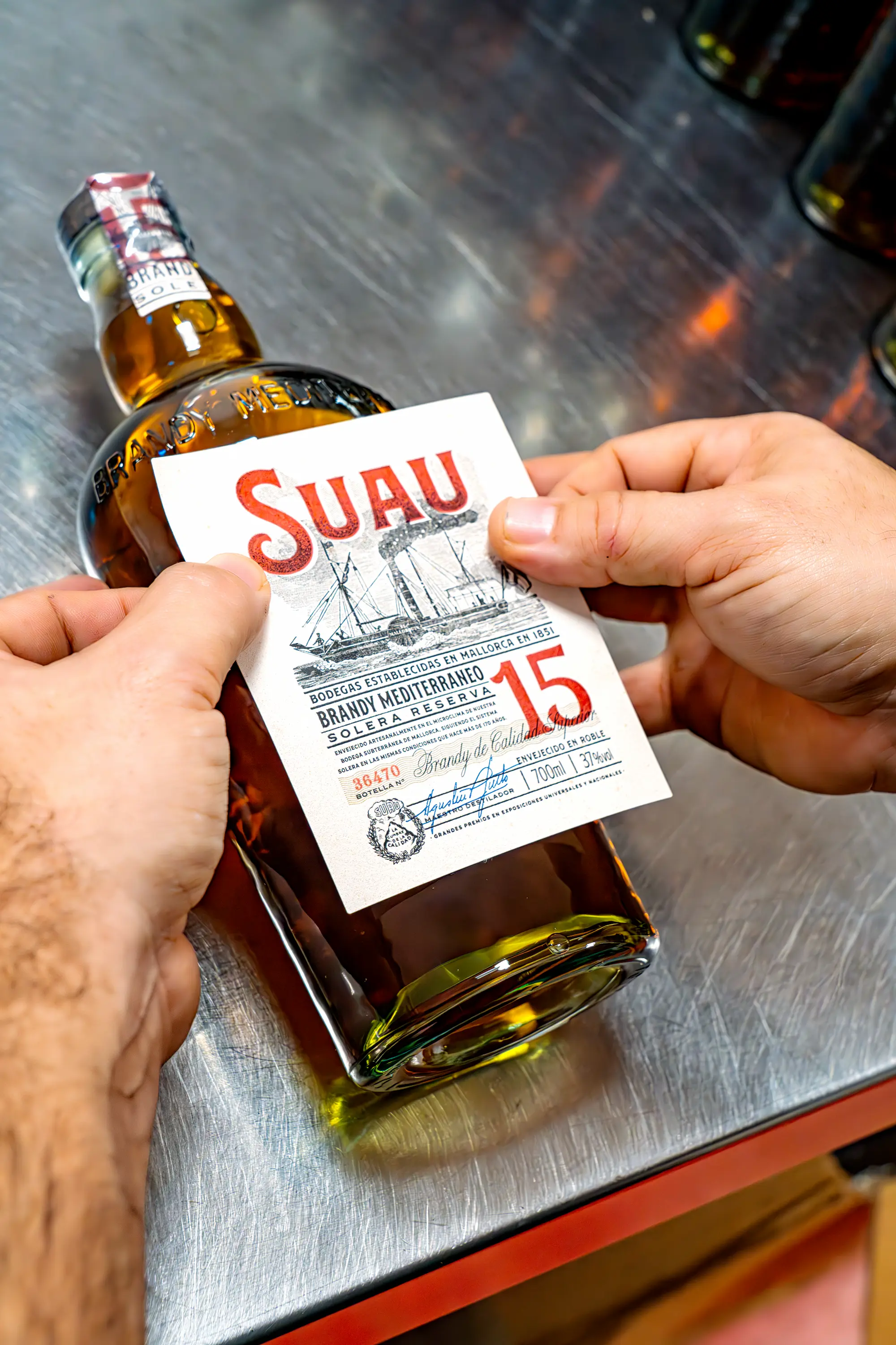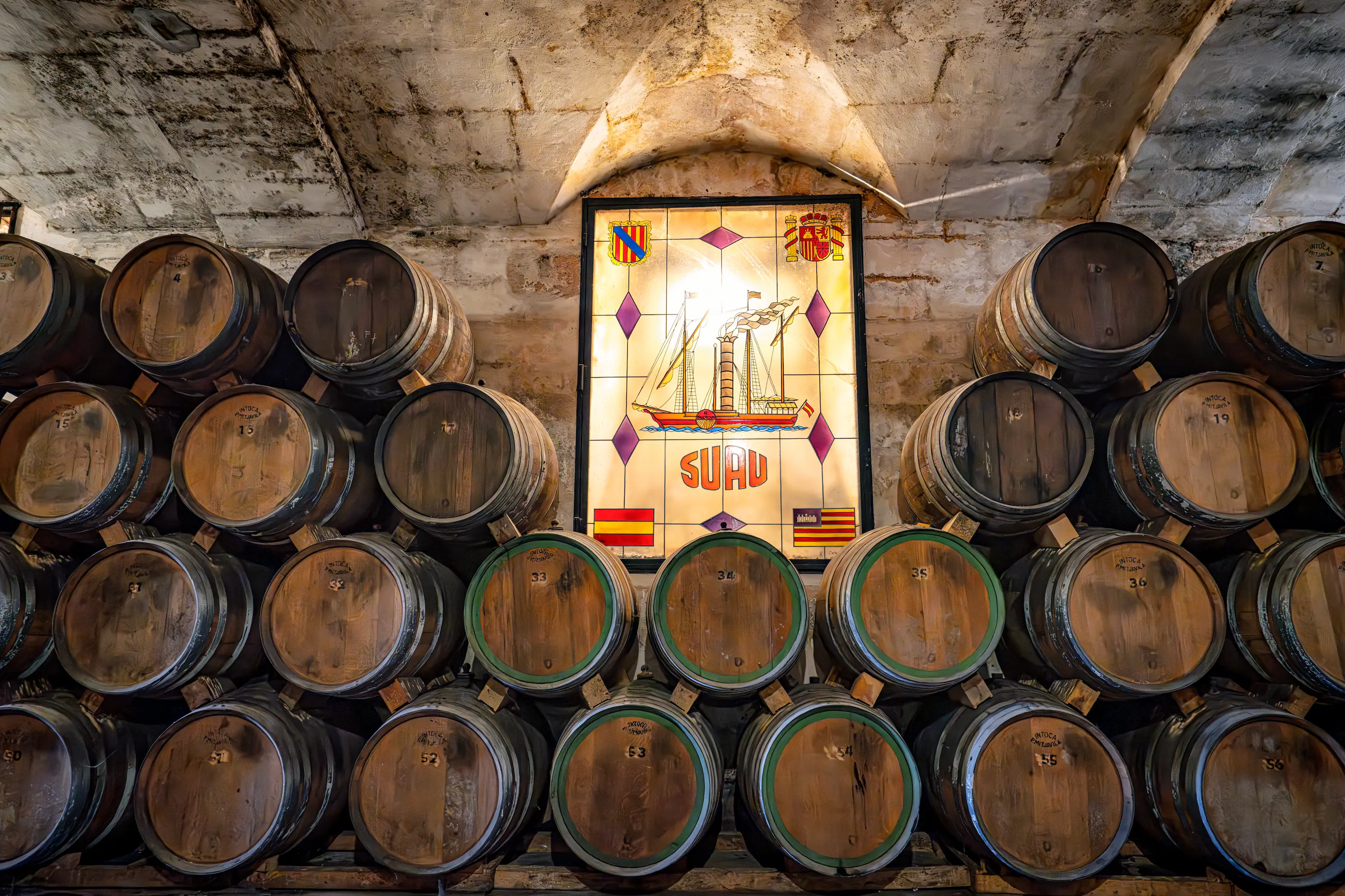 ie viele großartige Geschichten aus der Vergangenheit begannen auch die Ursprünge von Bodegas Suau, Mallorcas ältester Brennerei, mit einem Schiff und Abenteuerlust. Zu Beginn des 19. Jahrhunderts segelte Juan Suau y Bennassar von Mallorca zu den Karibikinseln, insbesondere nach Kuba, wo er, inspiriert von den Zuckerrohrplantagen, die er dort entdecken würde, eine Brennerei zur Herstellung von Rum, Brandy und Anis errichtete, die zwischen den Inseln transportiert wurden. Sein erster Rum, Ron Jungla, der noch heute produziert wird, prägt die Legende dieser historischen Bodega. Auf seiner ersten Reise nach Kuba hielt er in einer westafrikanischen Stadt an und trank in einer Taverne etwas, als ihm der Besitzer ein Elefantenamulett mit erhobenem Rüssel gab und dem jungen Seemann mitteilte, dass dieser Elefant Glück bringen sollte. Was zunächst nur ein lustiges Mitbringsel zu sein schien, entpuppte sich als Suau y Bennassars Glücksbringer, als er auf seinem Weg nach Kuba in einen schrecklichen Sturm geriet, der sein tödliches Ende hätte bedeuten können. Überzeugt, dass dieses Amulett ihn gerettet hatte, kreierte er sein erstes Logo — den Elefanten mit erhobenem Rüssel für seinen Ron Jungla, und das ist bis heute ein Symbol der Marke. Eine der Brandy-Flaschen ist mit dem berühmten Schiff El Mallorquin gekennzeichnet, das Juan Suau y Bennassar über die Meere transportierte. Jahrelang transportierte Suau y Bennassar Rum zwischen Kuba und Mallorca, bis er sich in eine mallorquinische Frau verliebte und beschloss, sich wieder auf Mallorca niederzulassen und zu heiraten (zum Teil, weil die Familie der Frau darauf bestand, dass er seine Abenteuer beendet, so heißt es...).