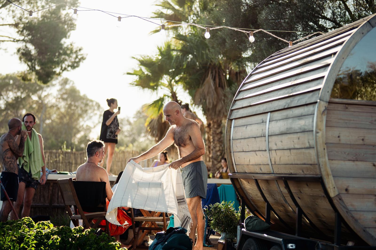 Armed with their experience, Jonathan and Kikki decided to change their lives. “I knew I wanted to work on something physical and local,” says Jonathan. The idea of setting up a mobile sauna in Mallorca took root, but one question nagged at them: could the sauna culture work under the Mediterranean sun? Their doubts vanished when Jonathan discovered that a similar concept was a huge hit in Ibiza, even in the height of summer.