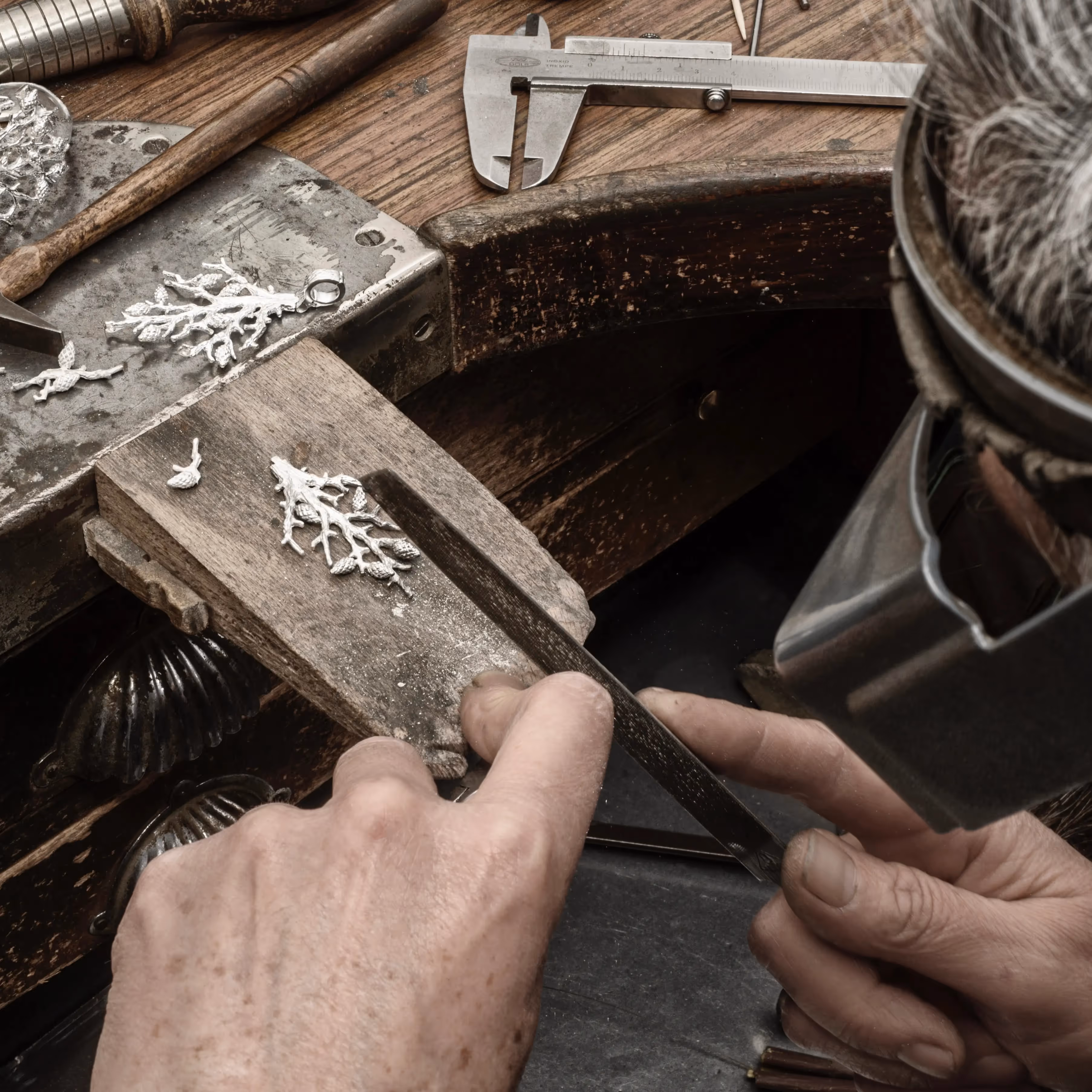 La historia de Isabel Guarch comienza en el seno de su familia. Durante nuestra entrevista para View Mallorca, confiesa: “Mi pasión por las joyas me la transmitió mi madre. De ella aprendí los valores de la marca, la calidad de cada una de las piezas, el cuidado de los detalles, el trabajo artesanal y algo que es muy importante: el trato personal”. Estos principios han sido la base de su trabajo durante todos estos años, diferenciándola en un mercado saturado. “Esos valores son sobre los que he sustentado mi trabajo”, añade, destacando la importancia del carácter artesanal y personalizado en su marca.