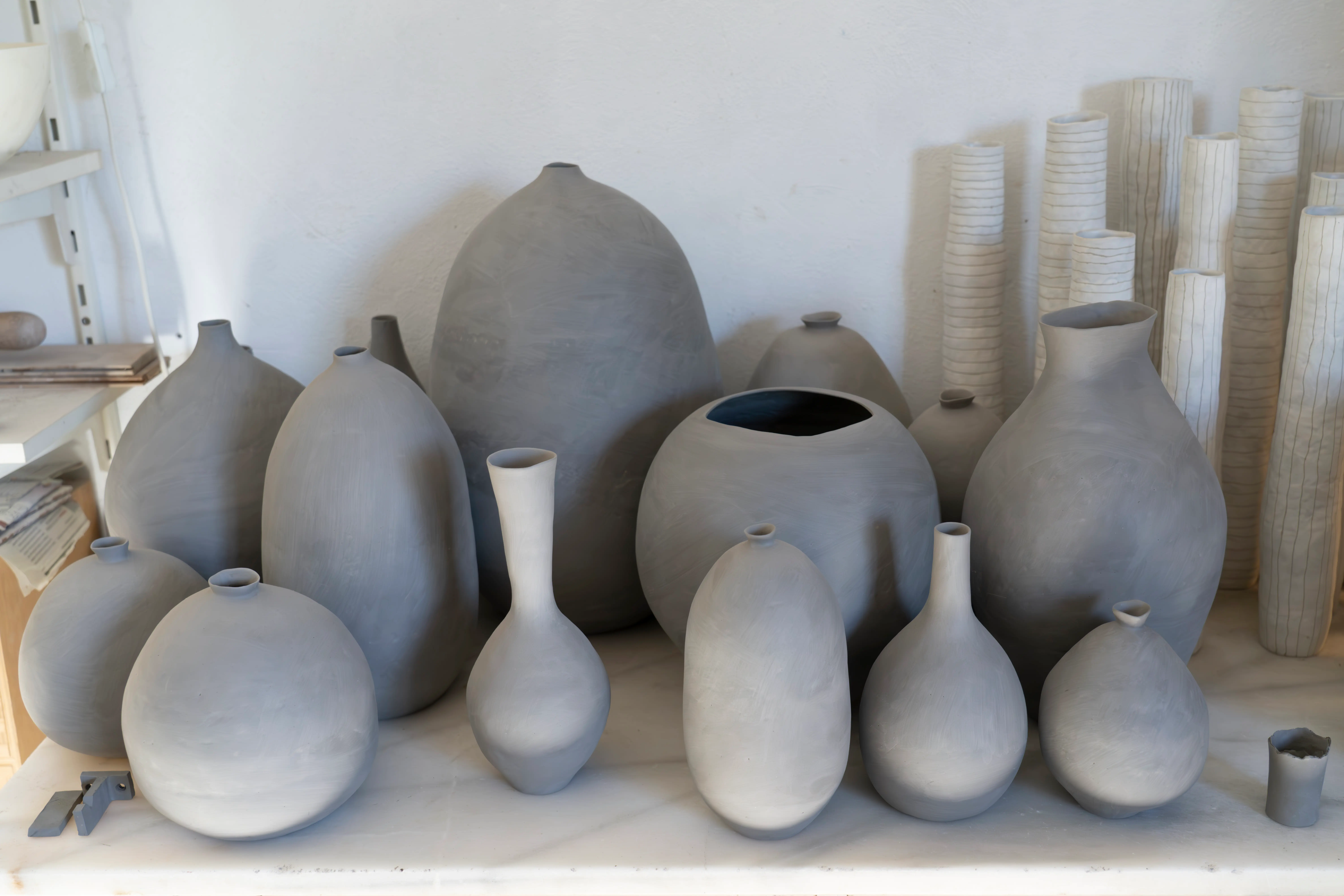 lo largo de un tranquilo tramo de carretera en el tranquilo valle de Es Capdella se encuentra el acogedor estudio de la artista de cerámica Anna Skantz. El canto de los pájaros, las plantas, las flores y las vistas de las montañas rodean el espacio, creando una atmósfera de calma pastoral. Sin embargo, en el interior, Skantz trabaja arduamente, enrollando, construyendo a mano, pintando y experimentando. Originaria de Suecia, Skantz llegó a Mallorca en 1990 y se instaló en su estudio en 2002. El espacio está repleto de estanterías que contienen piezas de más de veinte años en distintos estados de finalización: tazas, platos, jarrones, esculturas y objetos que muestran a una artista en constante movimiento, curiosa y llena de ideas.