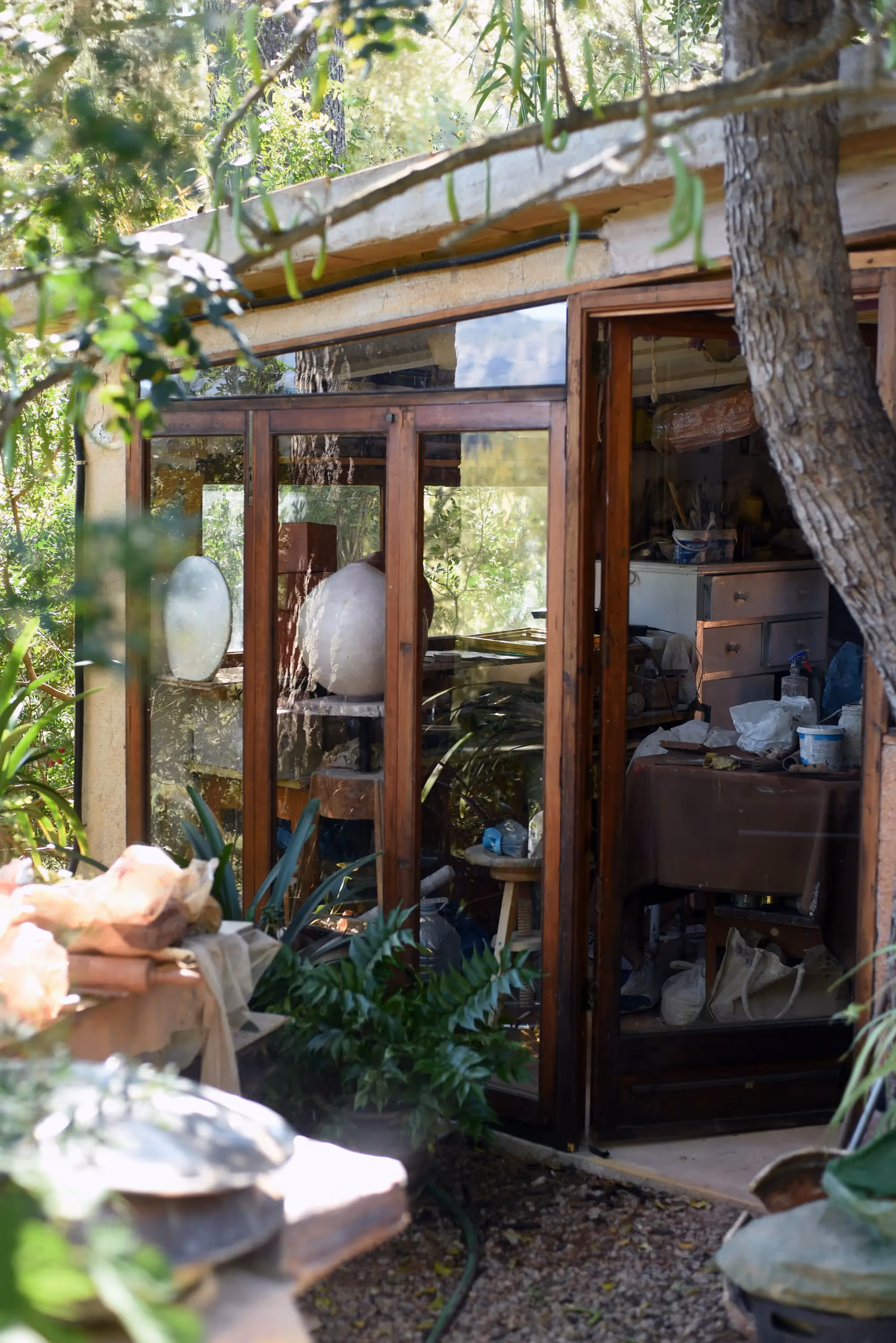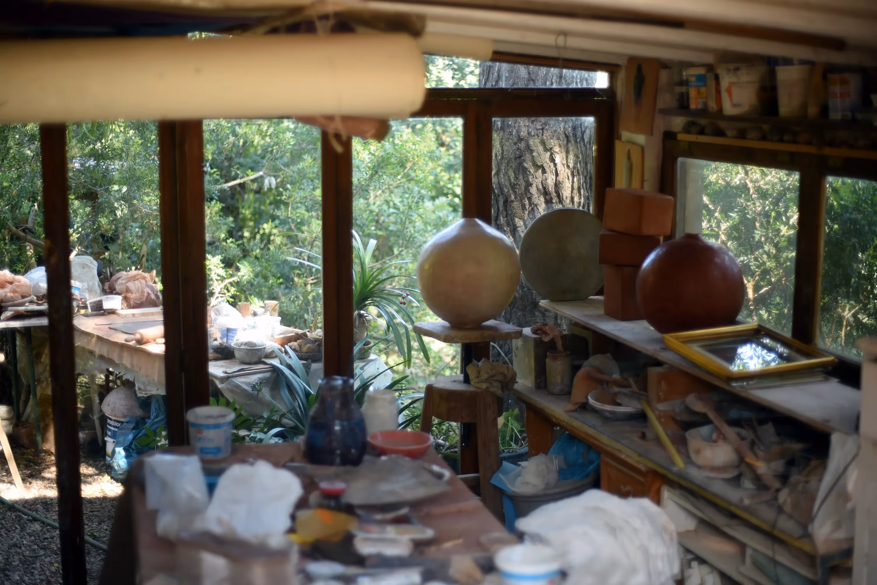 Pero mi estudio es el lugar donde paso la mayoría de las horas del día. Donde me materializo, en la pintura, las ideas y las intuiciones, y en la arcilla, las vasijas son donde permanece la esperanza. Pulirlas es como rezar por las generaciones futuras: para poder «volver al jardín» y cuidarlo.