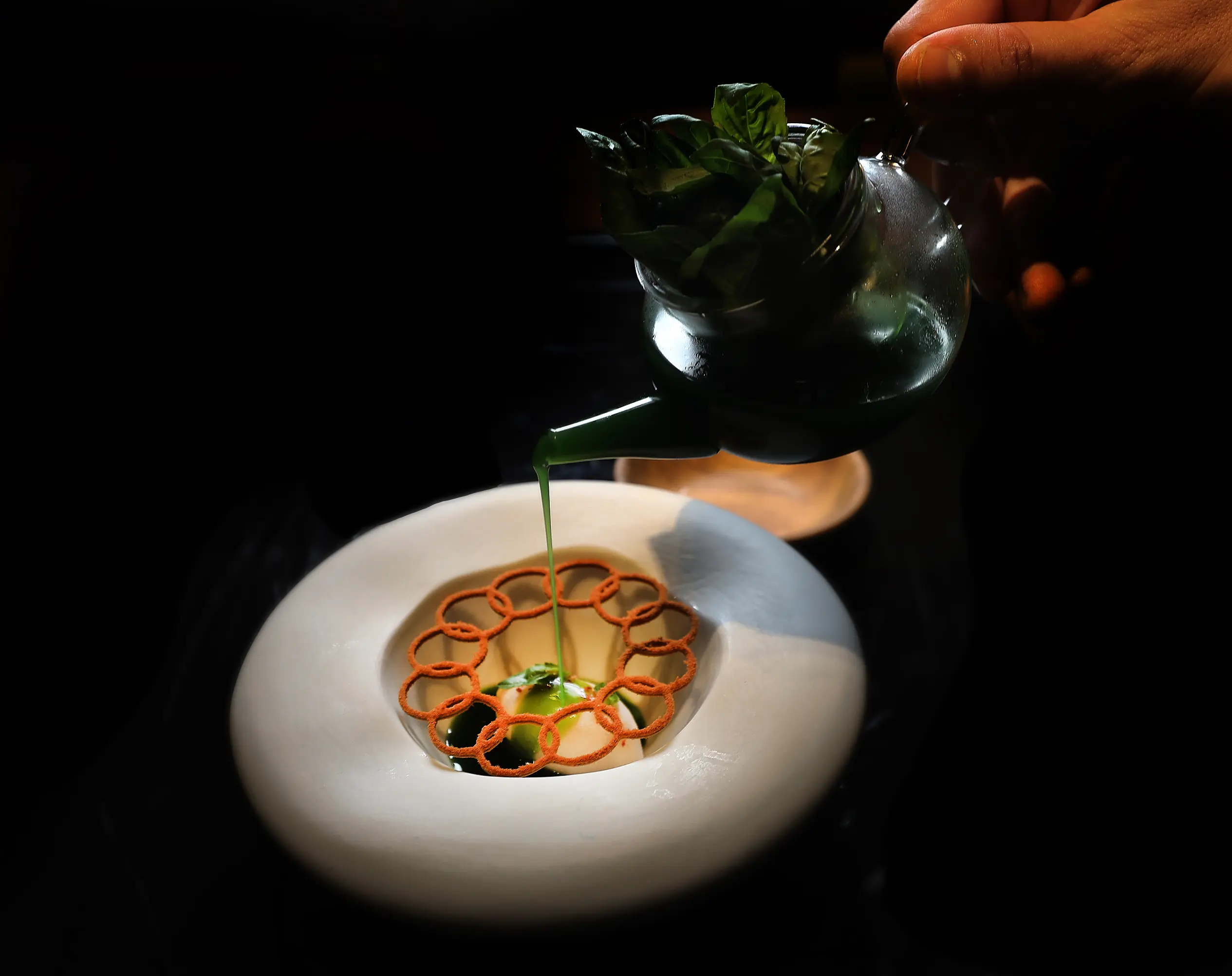 It would be impossible to choose just one, but the extra virgin olive oil that we produce on the estate has a special meaning. In 2023 we produced our first oil, the fruit of nearly 200 olive trees from Castell Son Claret itself. Also the lemon, so Mediterranean, which we use in dishes, desserts and cocktails. Both ingredients represent the essence of our cuisine: respect, origin and freshness.